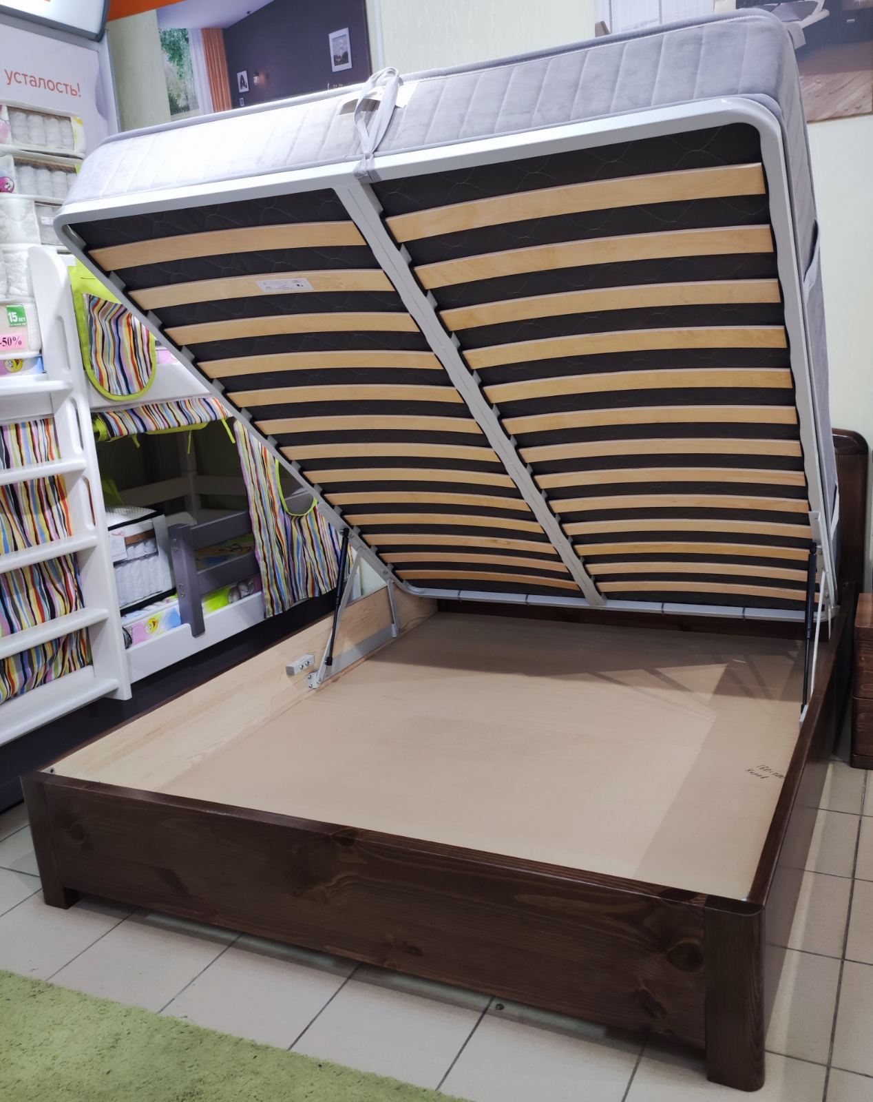 Кровать со встроенным основанием, оснащенным подъемным механизмом.