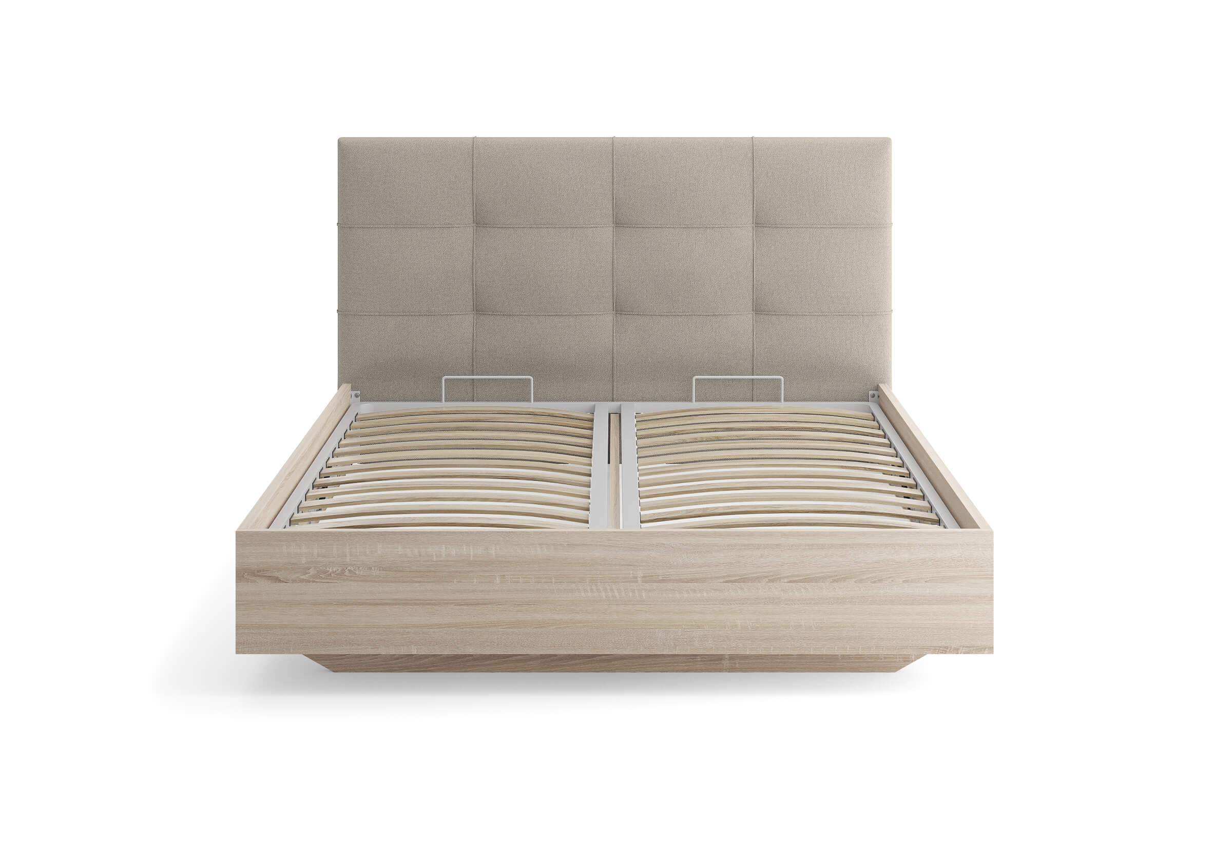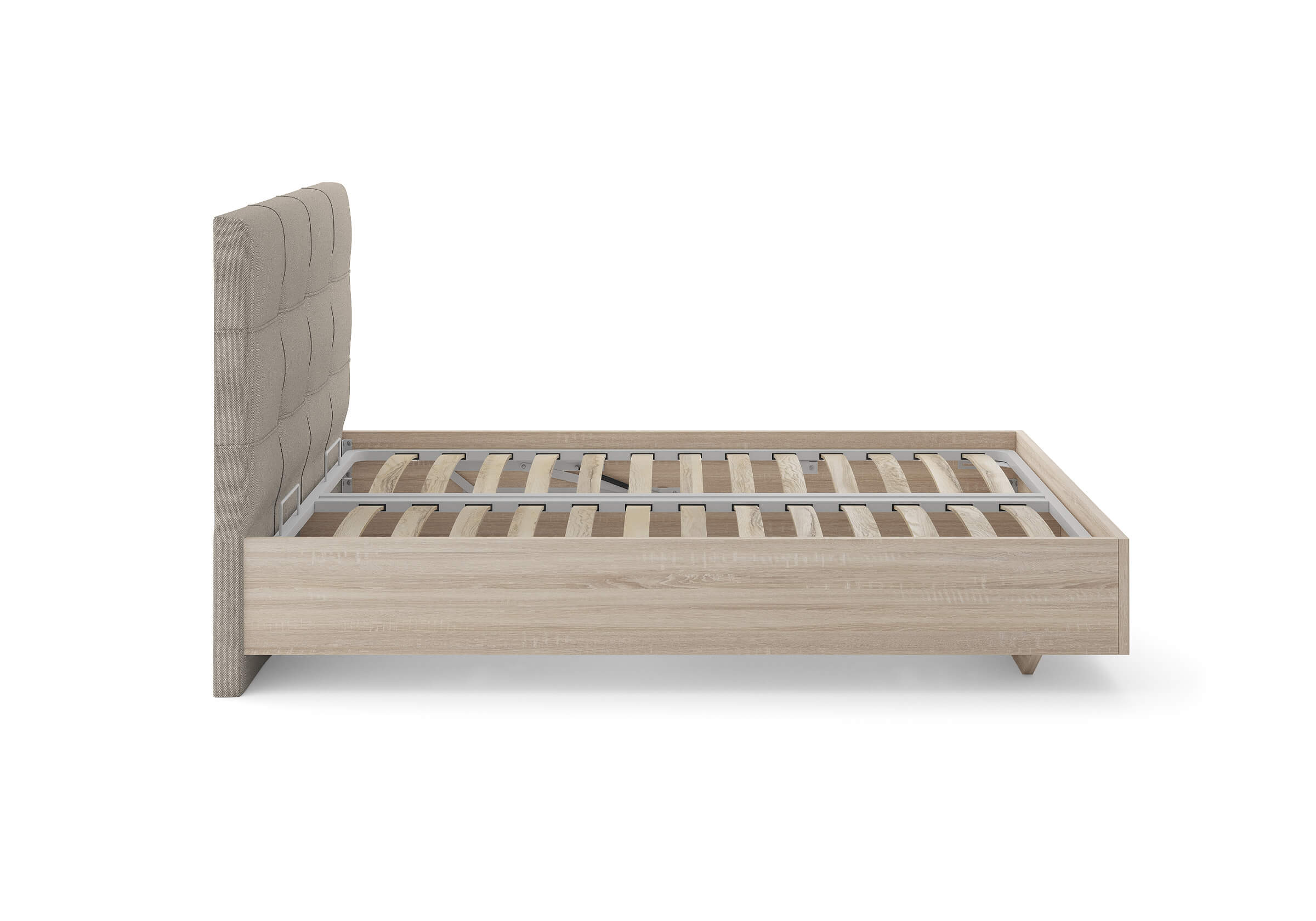 Царги из ЛДСП увеличенной толщины придадут строгость и надежность. Благодаря сочетанию усиленных металлических уголков, ребер жесткости и эксцентриковой стяжке конструктив кровати получается жёстким и прочным.