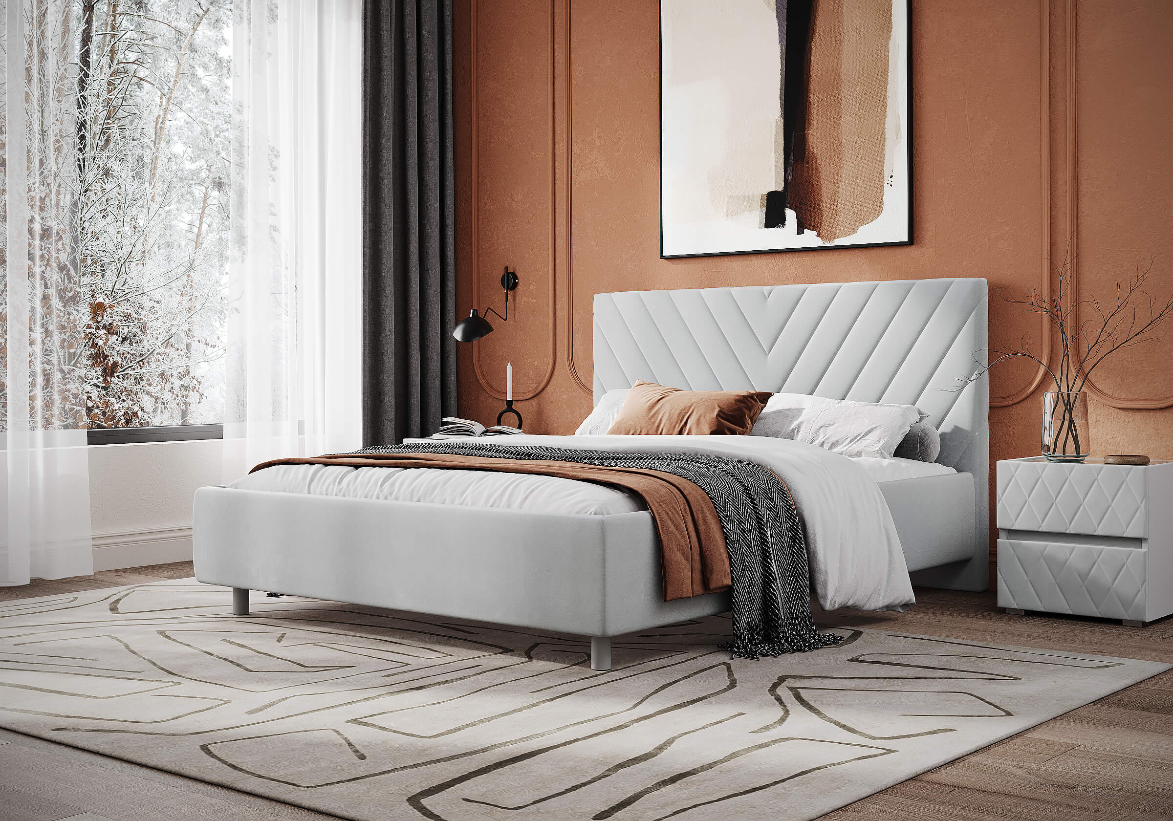 - Модель изготовлена из ДСП и бруса березы в изголовье. Обивка кровати имеет более 100 вариантов цветового исполнения: из эко-кожи, глазго, велюра и вельвета, микровелюра, шинила, энигмы. Обратная сторона изголовья обита спандбондом, но при желании, её можно выполнить из основного обивочного материала.