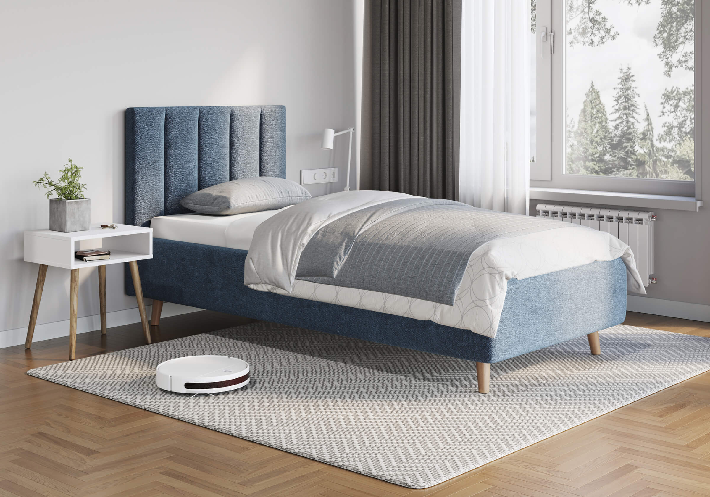 - Кровать с мягким стеганым изголовьем, украшенная элегантными геометрическими линиями, придаст изысканность и уют спальному месту. Отлично впишется в большинство современных интерьеров. Увеличенный просвет от пола позволяет облегчить уборку под кроватью, в том числе роботом–пылесосом. Царги кровати выполняются по технологии съемного чехла. При необходимости кровать может быть укомплектована разборным или неразборным металлическим основанием с ламелями, подъемным механизмом с бельевым ящиком, трансформируемым основанием Aquarius.