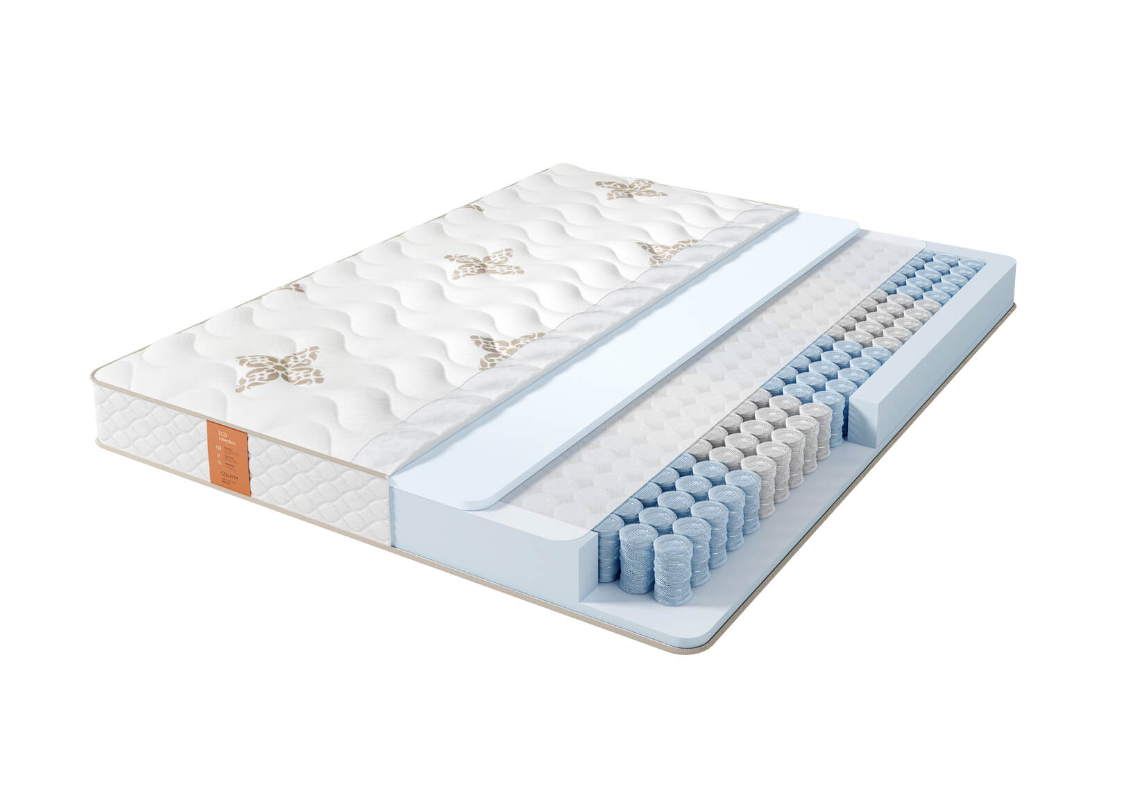 В основе матраса блок независимых пружин Pocket 5 Zone, имеющий 5 зон различной степени упругости, плотностью 512 пружин на спальное место. Благодаря использованию проволоки различного диаметра каждая из зон обеспечивает правильное распределение нагрузки. В качестве наполнителя мягкого слоя используется современная пена Foam, дышащая и гипоаллергенная, безопасная. Матрас Eco soft самый мягкий в коллекции Eco. Чехол выполнен из приятного турецкого трикотажа, с вискозой в составе, простеганного на объемном гипоаллергенном синтепоне.