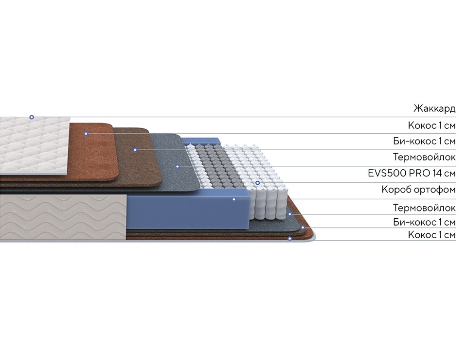 Повышенную жесткость матрасу Balance Double F придают комфортные слои из натуральной кокосовой койры и современного комбинированного материала. Сочетание таких наполнителей придает поверхности не только высокую жесткость, но и упругость, матрас не проминается, отлично держит форму и обеспечивает надежную поддержку позвоночника. А постоянный влаго- и воздухообмен создает оптимальный микроклимат спального места.