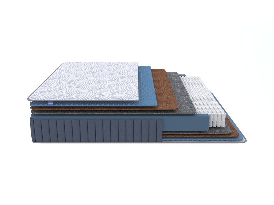 Точечная поддержка 1000 независимых пружин исключает эффект «гамака» и правильно распределяет нагрузку на позвоночник. Комфортные слои идеально дополняют друг друга: наполнитель на основе натурального кокосового волокна создаёт упругость, а Ортофом особой ячеистой резки добавляет приятный «массажный» эффект, позволяя расслабиться во время сна.