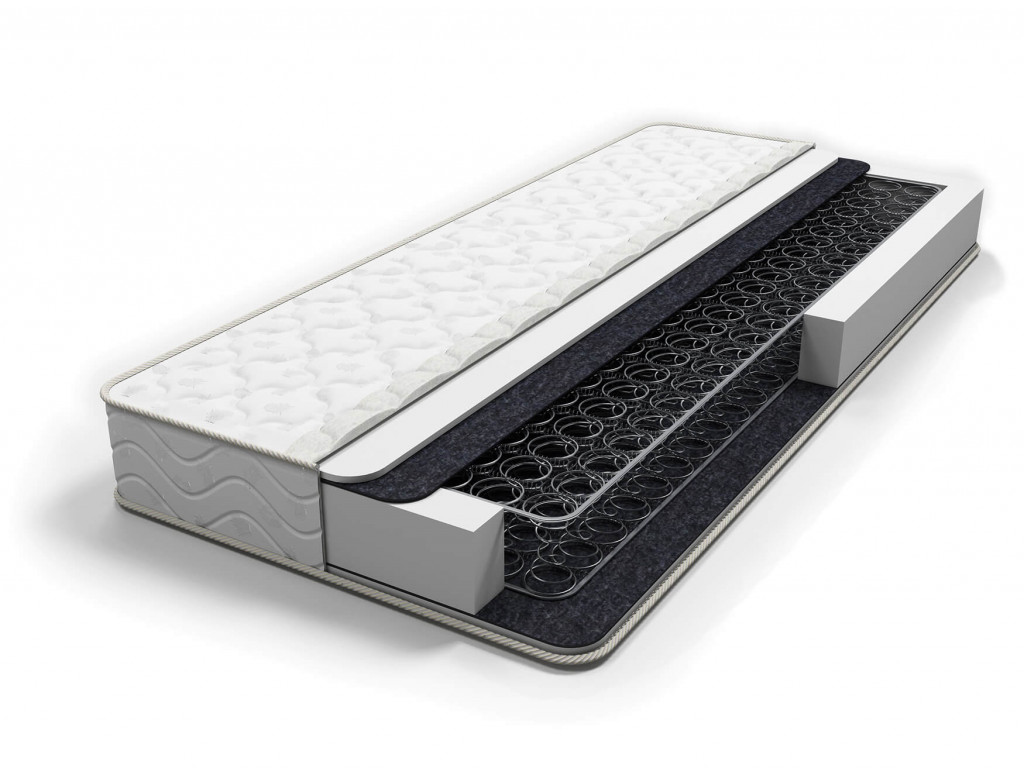Недорогой пружинный матрас изготовленный на основе классического пружинного блока Bonnell, плотного термоскрепленного войлока и современного материала Foam. Термоскрепленный войлок качественно изолирует пружинный блок матраса от комфортного слоя из современного гипоаллергенного материала Foam, придающего необходимую мягкость, при этом делая матрас устойчивым к нагрузкам. Чехол из жаккарда, простеганного на объемном синтепоне, обеспечивает долговечность и надежность изделия. Недорогая цена, высокое качество и сбалансированный состав делают этот матрас оптимальным для использования на даче или в гостевой спальне.