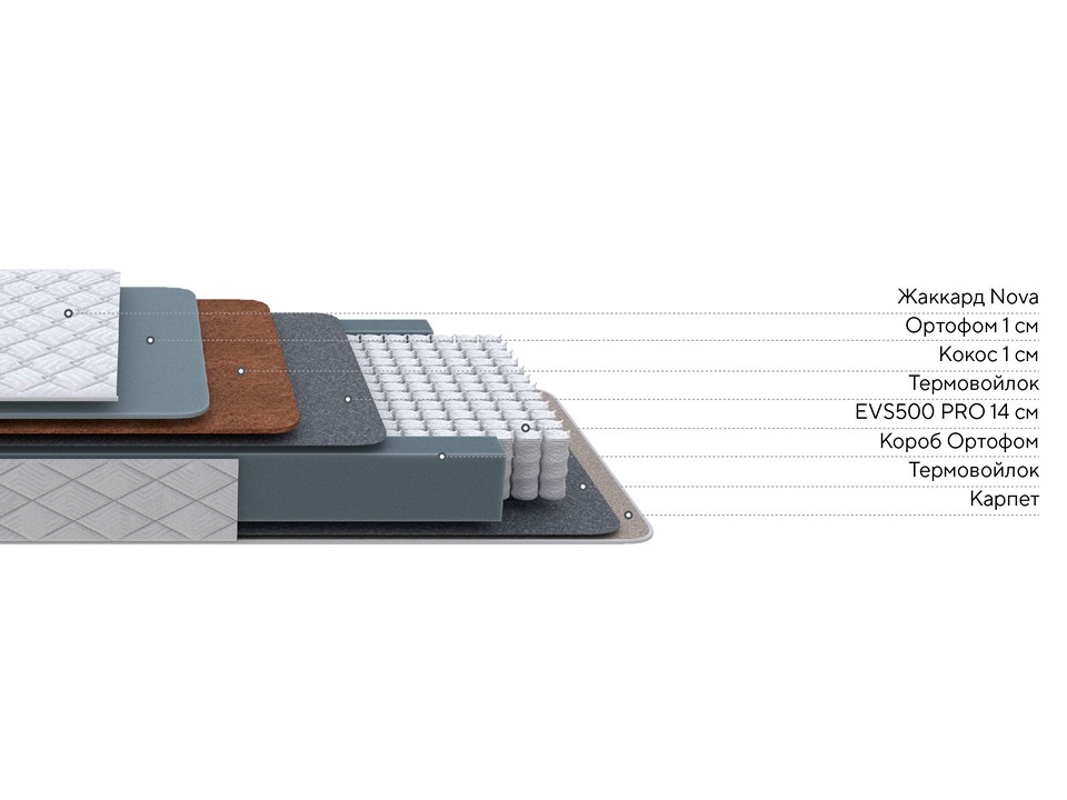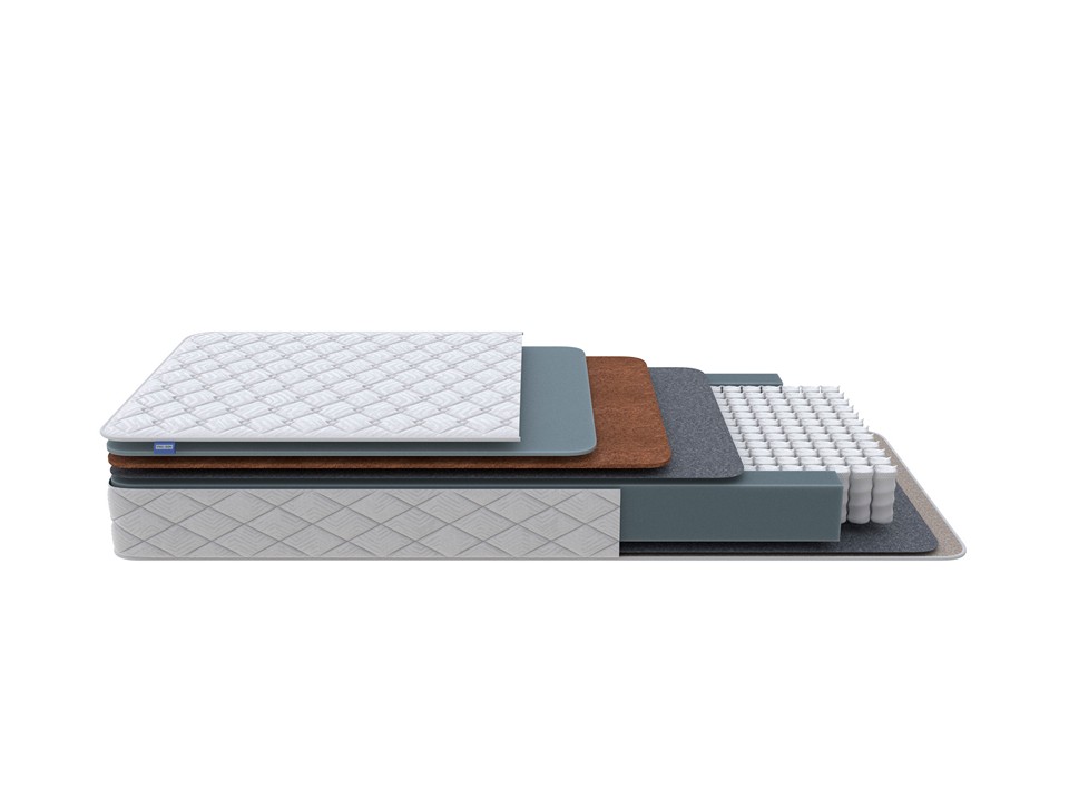 Односторонняя модель построена на базовом независимом пружинном блоке и наполнена современными материалами. Благодаря сочетанию мягкого и упругого Ортофома и эластичной латексированной кокосовой койры создаётся комфортная средняя жёсткость, универсальная для любого покупателя.