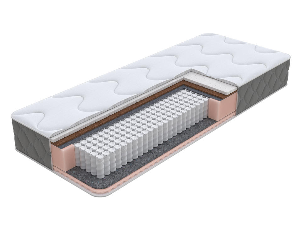 Внутренним наполнителем выступает кокосовое волокно. Придает спальному месту дополнительную жесткость. Благодаря своему составу, кокосовое волокно, более эластично и обладает повышенной износостойкостью, за счет чего матрас надолго сохраняет потребительские свойства.