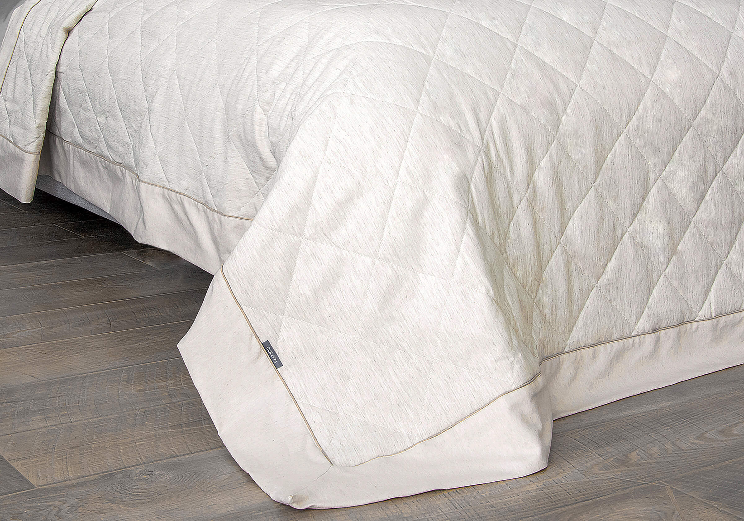 Покрывала Palermo подойдут любителям современного дизайна. Фактурная поверхность ткани и натуральные расцветки дополнены элегантным кантом по периметру. Жаккард на основе хлопка и переработанного полиэфирного волокна имеет объемную стежку в виде ромбов. Покрывала единого размера подойдут для двуспальных кроватей.