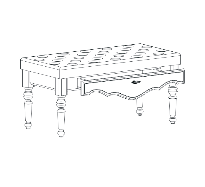 Банкетка оснащена выдвижным ящиком, крючки и ручки - старинная латунь