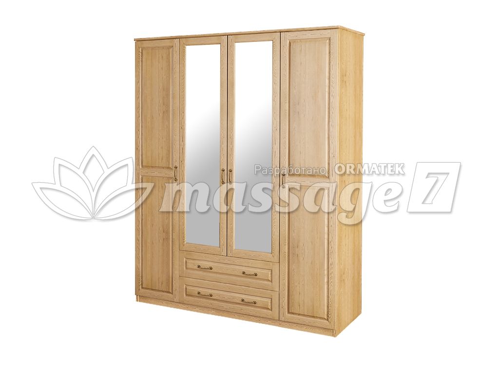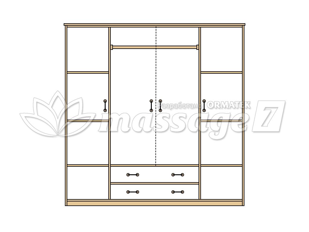 Шкаф ЕСО-19 красив, удобен и многофункционален. Средняя его часть представлена в виде отделения для тремпелей, два отсека по бокам – закрытых полок, а нижняя – дополнена вместительными выдвижными ящиками. Высокие зеркала на створках в центре являются очень выигрышным дизайнерским решением. Таким образом, ЕСО-19 обладает функциональными характеристиками сразу нескольких предметов мебели. Это позволит обеспечить обстановку комнаты необходимыми вещами и при этом сэкономить место. А классическое настроение в дизайне шкафа послужит украшением для помещения.