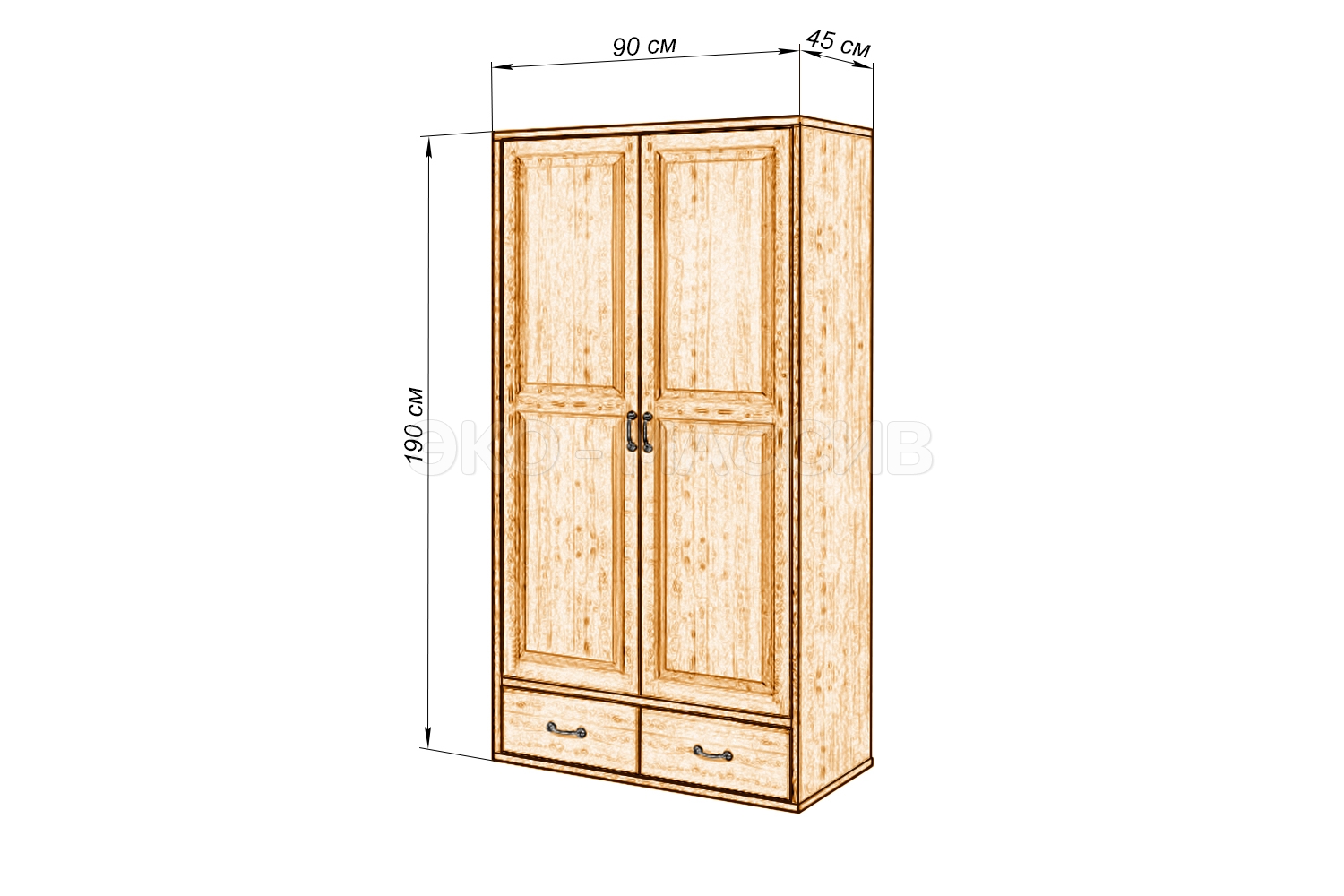 Шкаф ЕСО-21 выполнен со вкусом и в то же время прост. Строгие формы его корпуса разбавляют резные ножки, что делает этот предмет мебели неповторимым. Фасад двух створок украшает простая фрезеровка в виде четырех прямоугольников. Пара дополнительных выдвижных ящиков внизу имеет ровную поверхность. Это обеспечивает умеренность в оформлении во избежание перенасыщения в декоре. ЕСО-21 благодаря своему дизайну сможет с легкостью вписаться во многие стили интерьера. К тому же представленный цвет на фото не является единственным возможным оттенком исполнения данного мебельного элемента. Материал: Сосна — щит мебельный сращенный (класс Экстра), задняя стенка: ламинированная ДВП. Покрытие: Полиуретановые и акриловые ЛКМ фирмы TECHNOcolor, они характеризуются большим разнообразием и являются наиболее популярными на сегодняшний день, обеспечивают отличное качество поверхности, высокую износоустойчивость, позволяют дольше сохранить внешний вид изделия. Фурнитура: Мебельные петли с обратной пружиной BOYARD PUSH Slide-On совместно с магнитным толкателем. Именно толкатель позволяет открывать фасад от легкого нажатия и фиксировать его в закрытом состоянии с помощью магнитного наконечника.