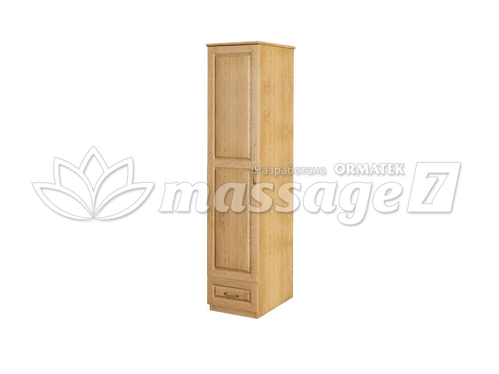 Шкаф ЕСО-22 миниатюрный и очаровательный в своем исполнении. Его минимальную ширину и глубину можно использовать в очень тесном помещении. А также этот предмет мебели может служить дополнительным элементом к уже имеющемуся гарнитуру. Фасад шкафа приправлен незамысловатым геометрическим орнаментом в виде трех прямоугольников, которые хорошо подчеркивают строгость линий корпуса. Зато резные ножки и фигурное основание ЕСО-22 вырываются из общего вида мебельного предмета своим классическим оттенком, что обеспечивает его дизайну оригинальность и самобытность.