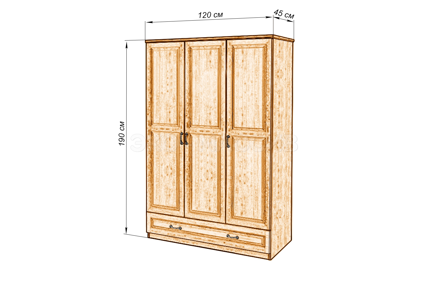 Не всегда большие шкафы являются вместительными и удобными в пользовании, чего нельзя сказать о модели ЕСО-7, которая разработана таким образом, чтобы пользоваться изделием было максимально комфортно. Внутри шкафа расположены полки для хранения и штанга для одежды. В нижней части имеется выдвижной ящик. Дизайн модели лаконичный и универсальный, способен вписаться в любое стилистическое оформление. У заказчика есть возможность выбрать другой цвет древесины. Приобретая шкаф ЕСО-7, можете быть уверены, что он прослужит долго. Материал: Сосна — щит мебельный сращенный (класс Экстра), задняя стенка: ламинированная ДВП. Покрытие: Полиуретановые и акриловые ЛКМ фирмы TECHNOcolor, они характеризуются большим разнообразием и являются наиболее популярными на сегодняшний день, обеспечивают отличное качество поверхности, высокую износоустойчивость, позволяют дольше сохранить внешний вид изделия. Фурнитура: Мебельные петли с обратной пружиной BOYARD PUSH Slide-On совместно с магнитным толкателем. Именно толкатель позволяет открывать фасад от легкого нажатия и фиксировать его в закрытом состоянии с помощью магнитного наконечника.