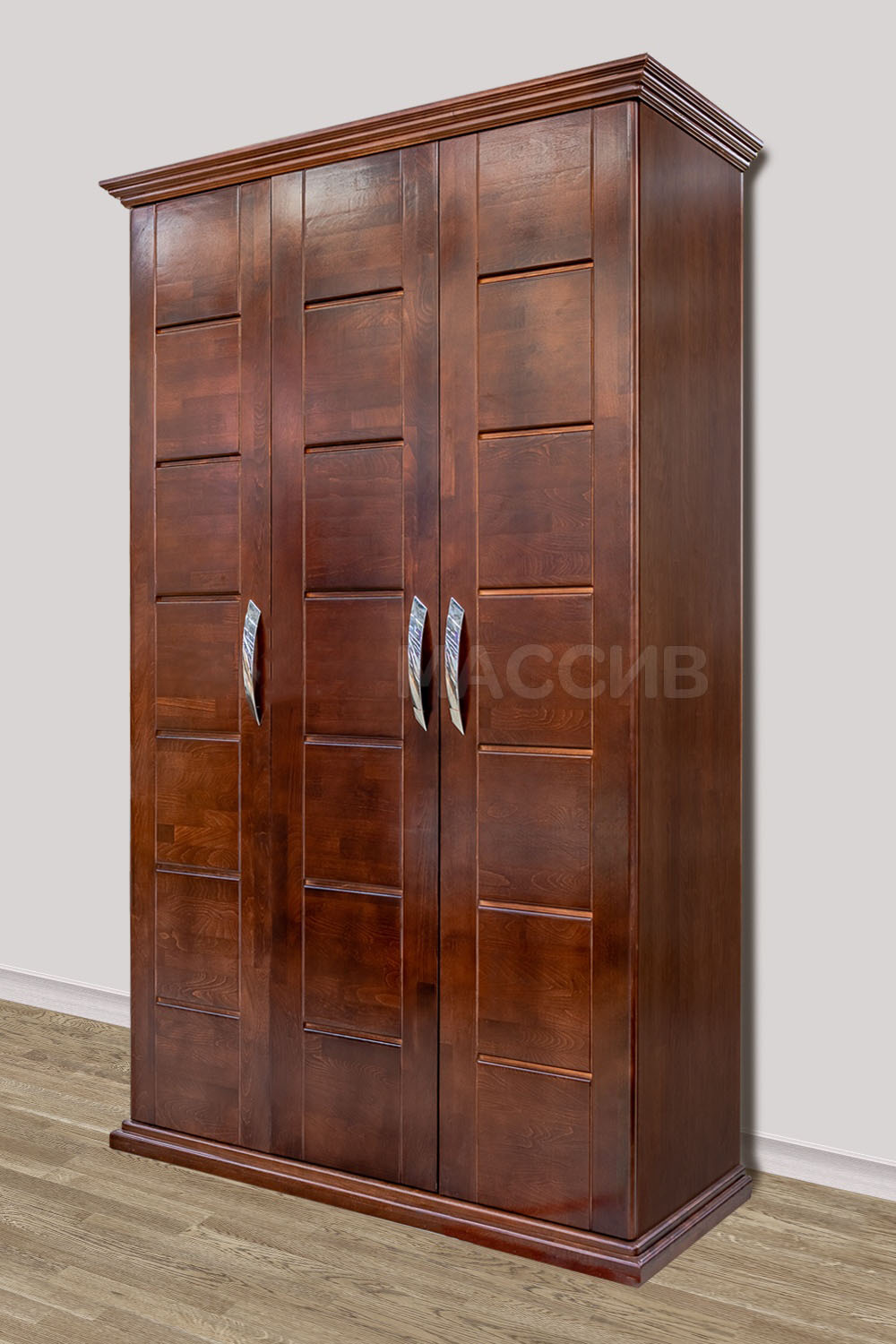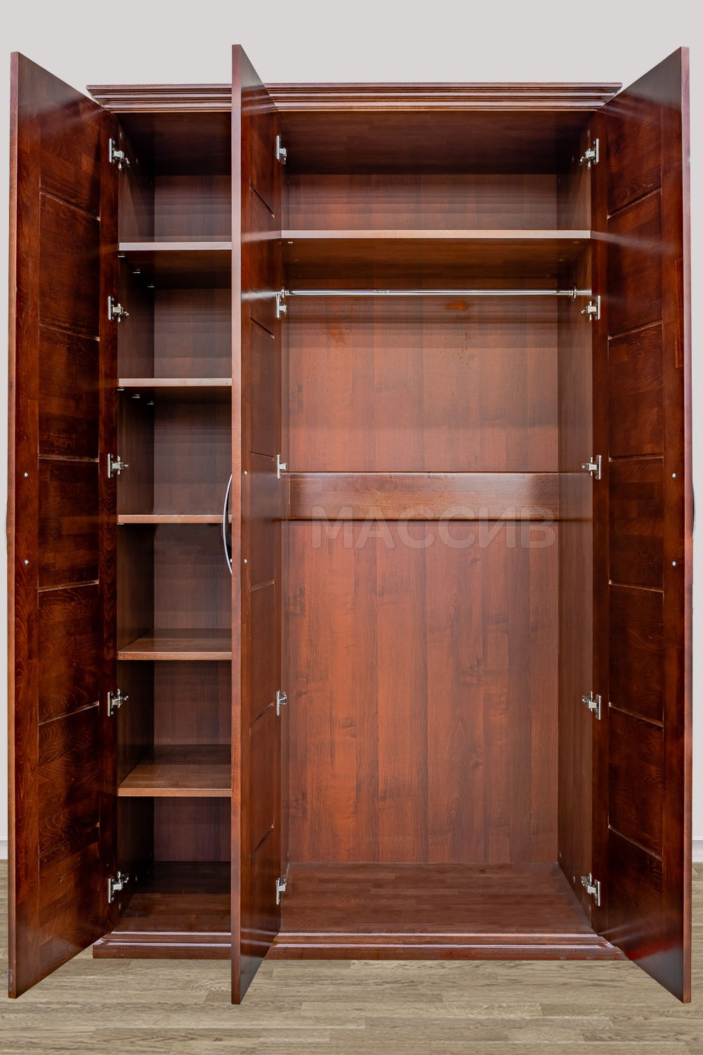 Шкаф трехстворчатый из серии «Веста» имеет строгий и внушительный вид. Он выполнен в классическом стиле и в то же время от него веет бесстрастием и осторожностью. Историческое направление в его оформлении подчеркивают массивные фигурные основание и крышка, закругленные углы и прекрасно подобранные ручки. Но правильные линии орнамента фасада выдают его аскетизм и чинность. Этот предмет мебели отлично впишется в обстановку комнаты, оформленную в сдержанном направлении без излишней чопорности и шика.