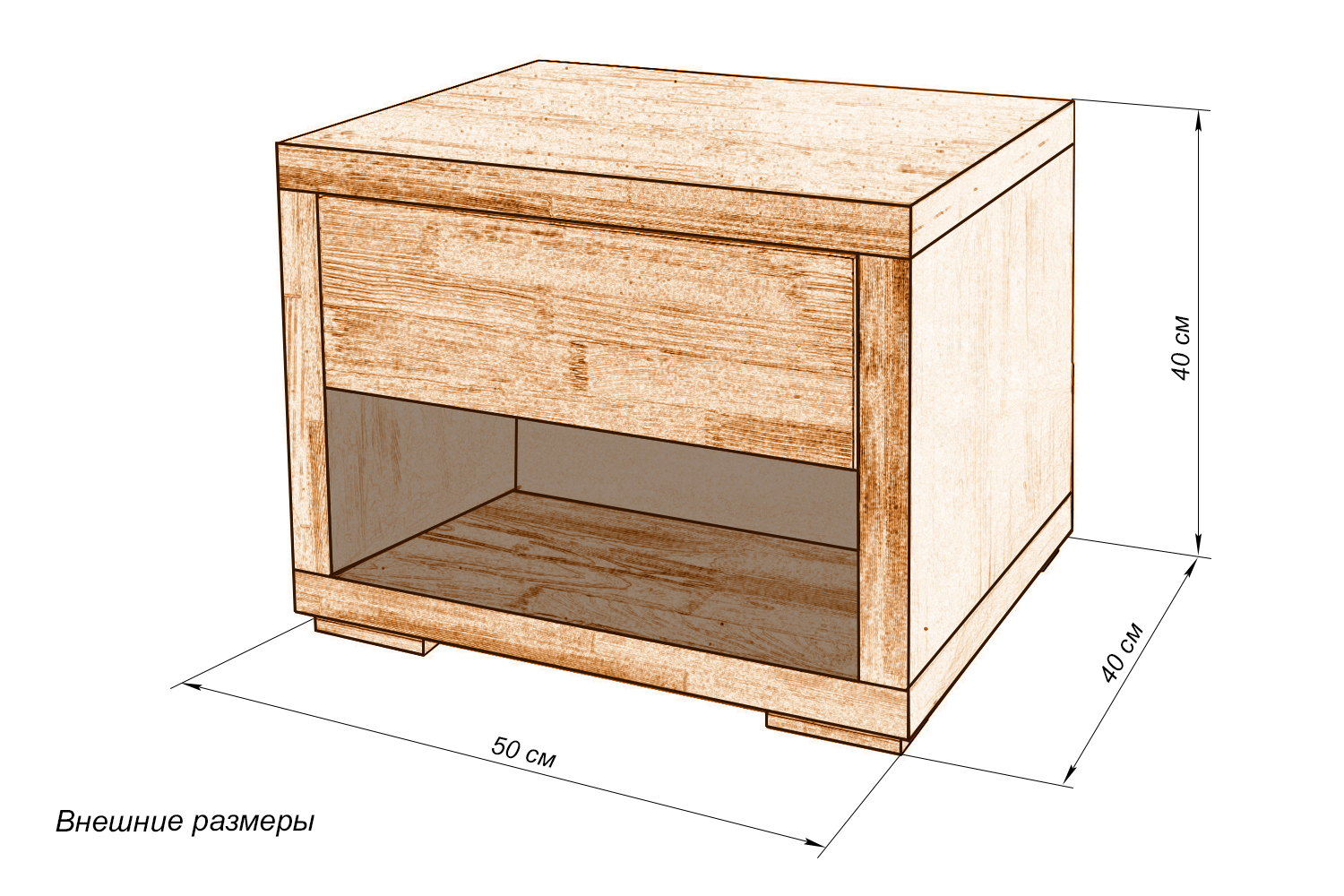 Модель включает ящик и дополнительное пространство для хранения мелочей и характеризуется лаконичной формой и классическим дизайном. Изюминку придает неповторимая текстура древесины на срезе. Компактные габариты делают возможным размещение даже на небольшой площади.