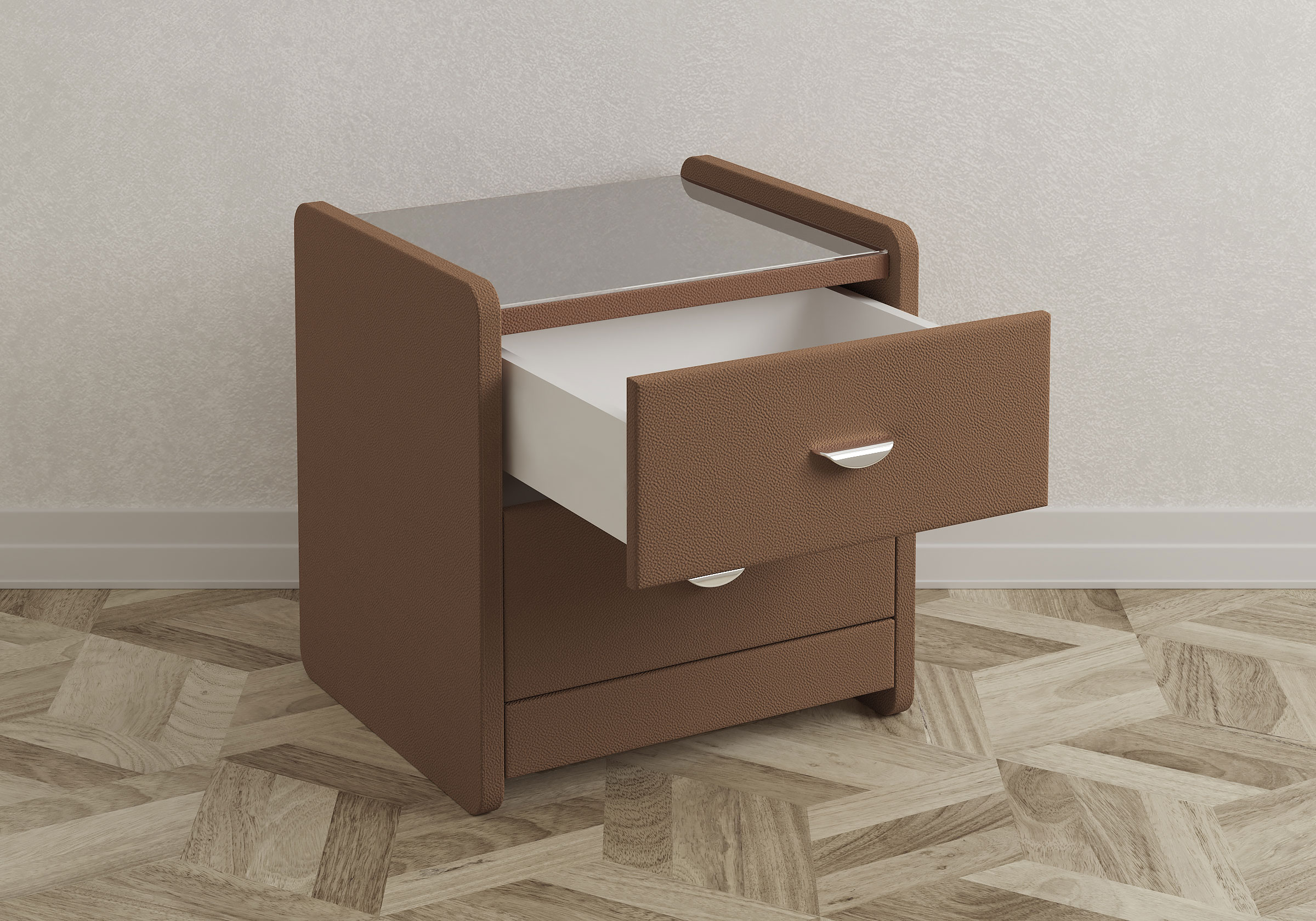 Стильная и практичная тумба прекрасно дополняет собой любой интерьер. Тумба с двумя выдвижными ящиками может выполняться в более 100 вариантах цветового исполнения. Для удобства использования и продления срока эксплуатации, рекомендуется использовать стеклянную накладку. Накладка используется в качестве столешницы для тумбы и защищает ее от повреждений и загрязнений.