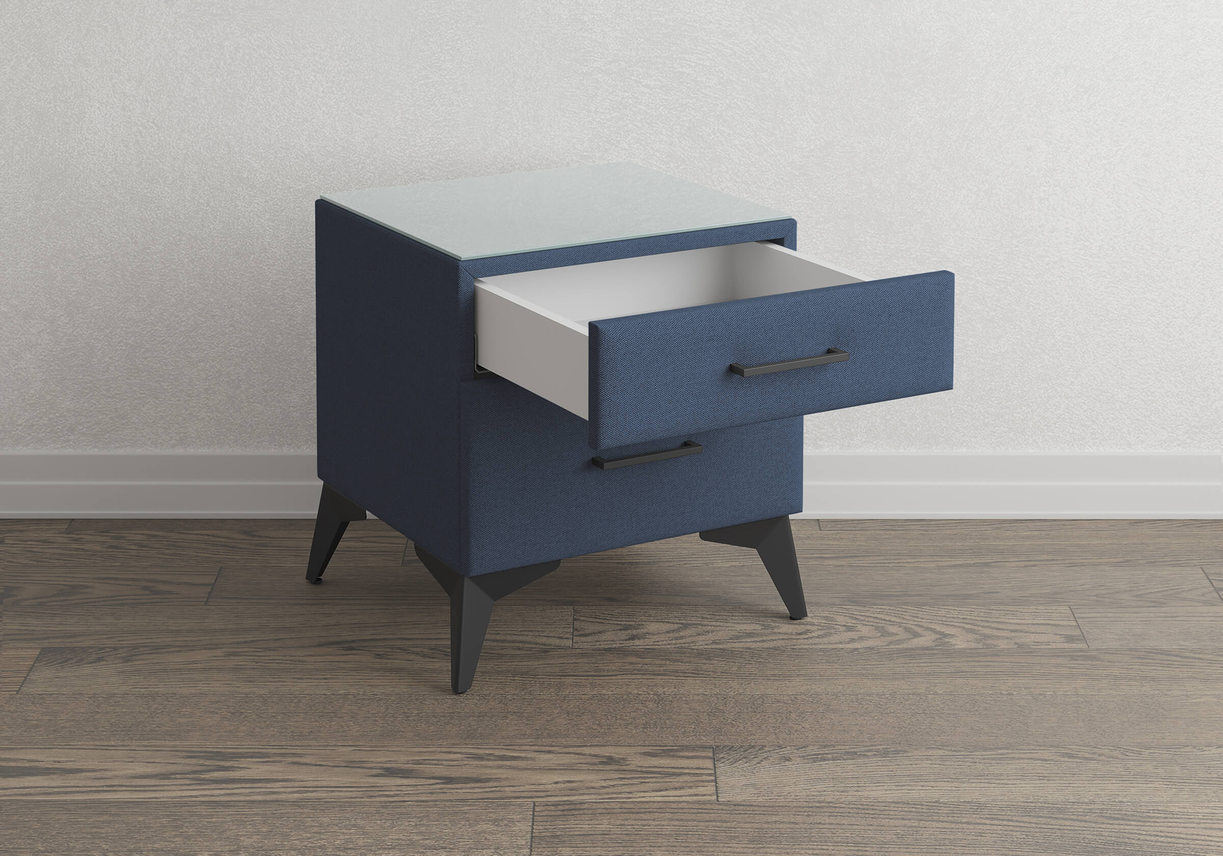 Стеклянная столешница заказывается дополнительно. Выглядит эстетично, предохраняет тканевую поверхность от загрязнений и пыли.Металлические опоры