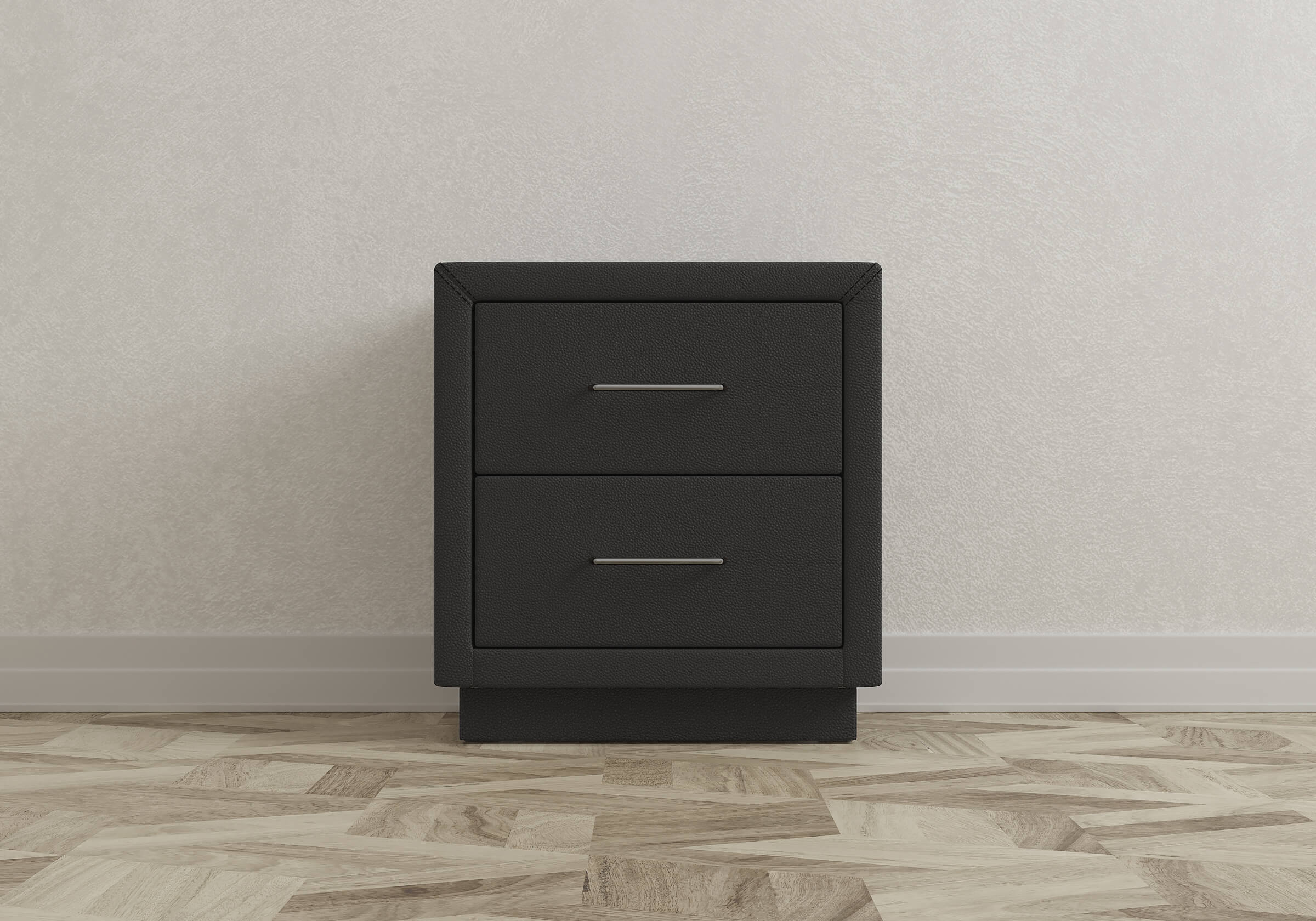 Прикроватная тумба с двумя выдвижными ящиками сочетается с любыми моделями кроватей, органично вписывается в интерьер практически любого стиля. Каркас тумбы выполнен из ДСП. Каркас тумбы и фасад ящиков покрыты обивочным материалом. Для удобства использования и продления срока эксплуатации, рекомендуется использовать стеклянную накладку. Накладка используется в качестве столешницы для тумбы и защищает ее от повреждений и загрязнений