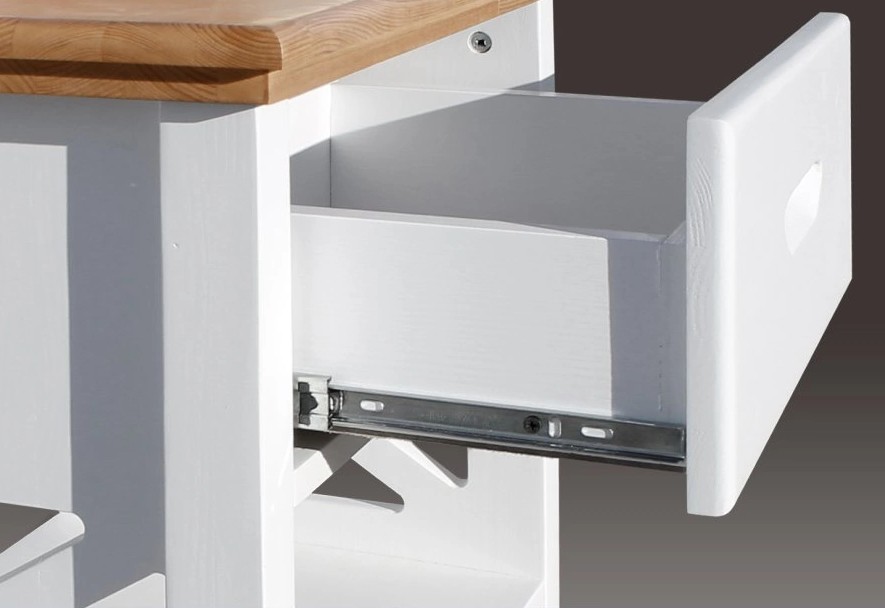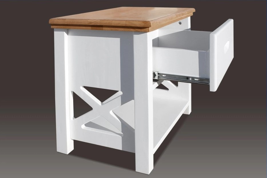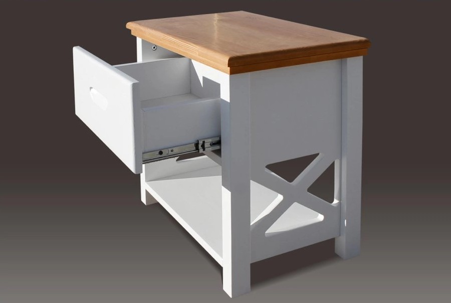 У изделия есть столешница, которую можно использовать для лампы, будильника и других предметов. В основе находится натуральная древесина, характеризующаяся длительным сроком службы. Она справляется с повышенными нагрузками, сохраняя первоначальный внешний вид.