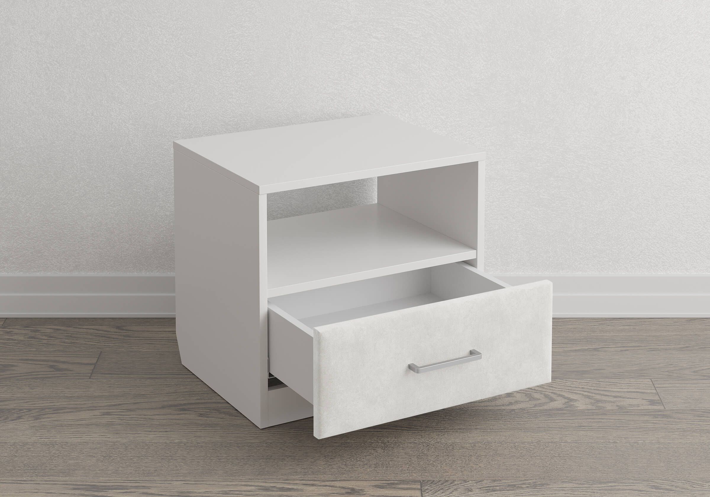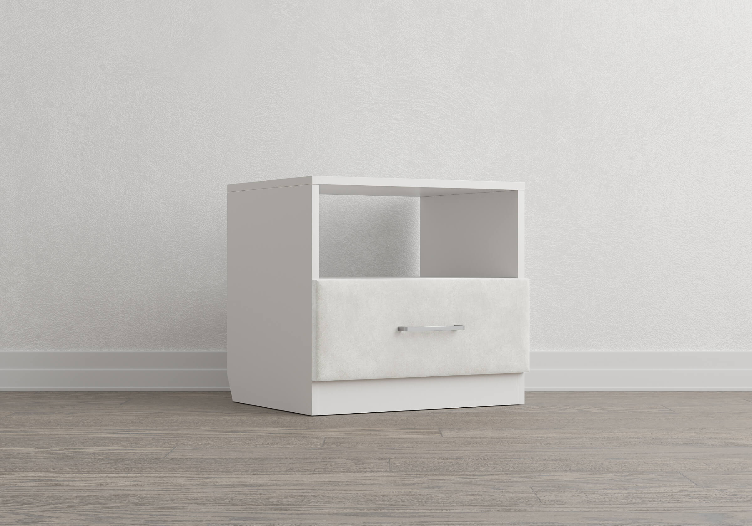 Элегантная комбинированная тумба, сочетающая в себе лаконичность ЛДСП и уют мягких фасадов ящиков, обтянутых тканью. Конструкция тумбы предусматривает открытую нишу для мелочей и вместительный выдвижной ящик с направляющими скрытого монтажа и доводчиками. Корпус из ЛДСП гарантирует долговечность и устойчивость к механическим повреждениям, а мягкие фасады в ткани и изящные металлические ручки добавят уют. Большое разнообразие текстур и цветовых решений для гармоничной интеграции в любой интерьер.