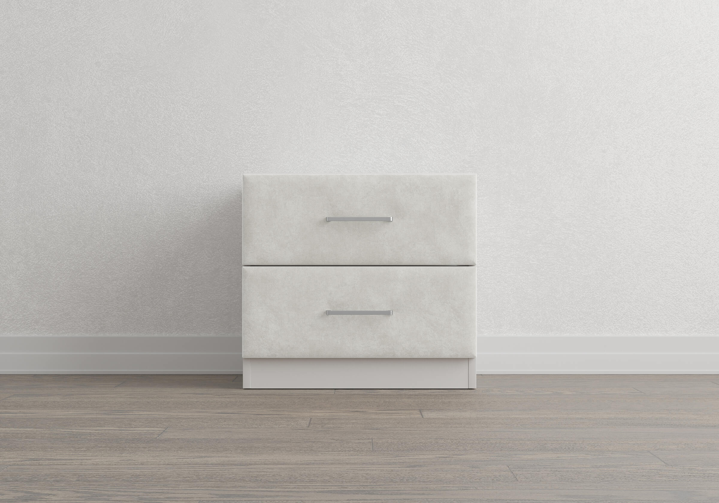 Элегантная комбинированная тумба, сочетающая в себе лаконичность ЛДСП и уют мягких фасадов ящиков, обтянутых тканью. Конструкция тумбы предусматривает два вместительных выдвижных ящика с направляющими скрытого монтажа и доводчиками. Корпус из ЛДСП гарантирует долговечность и устойчивость к механическим повреждениям, а мягкие фасады в ткани и изящные металлические ручки добавят уют. Большое разнообразие текстур и цветовых решений для гармоничной интеграции в любой интерьер.