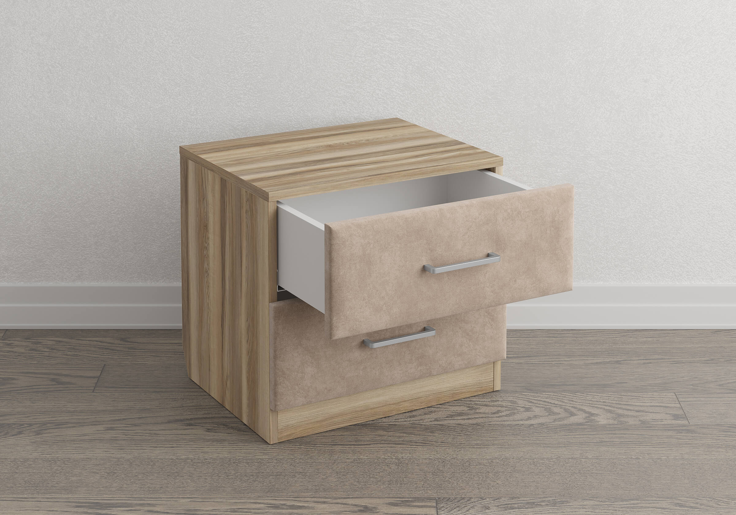 Элегантная комбинированная тумба, сочетающая в себе лаконичность ЛДСП и уют мягких фасадов ящиков, обтянутых тканью. Конструкция тумбы предусматривает два вместительных выдвижных ящика с направляющими скрытого монтажа и доводчиками. Корпус из ЛДСП гарантирует долговечность и устойчивость к механическим повреждениям, а мягкие фасады в ткани и изящные металлические ручки добавят уют. Большое разнообразие текстур и цветовых решений для гармоничной интеграции в любой интерьер.