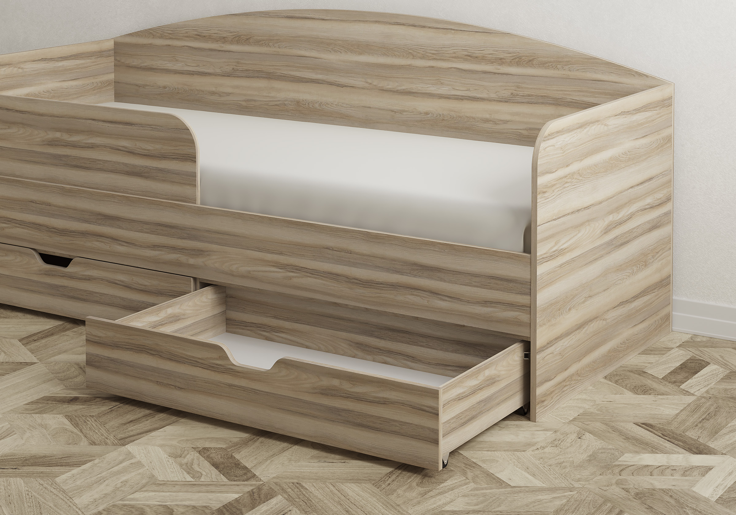 Ящиком для хранения вещей можно укомплектовать любую из трех кроватей Mariana, Crystal, Ines. Он универсальный, вместительный, и способен выдержать вес до 10 кг. Ящик можно выполнить в тон кровати или контрастного цвета. На выбор 5 актуальных, современных оттенков.