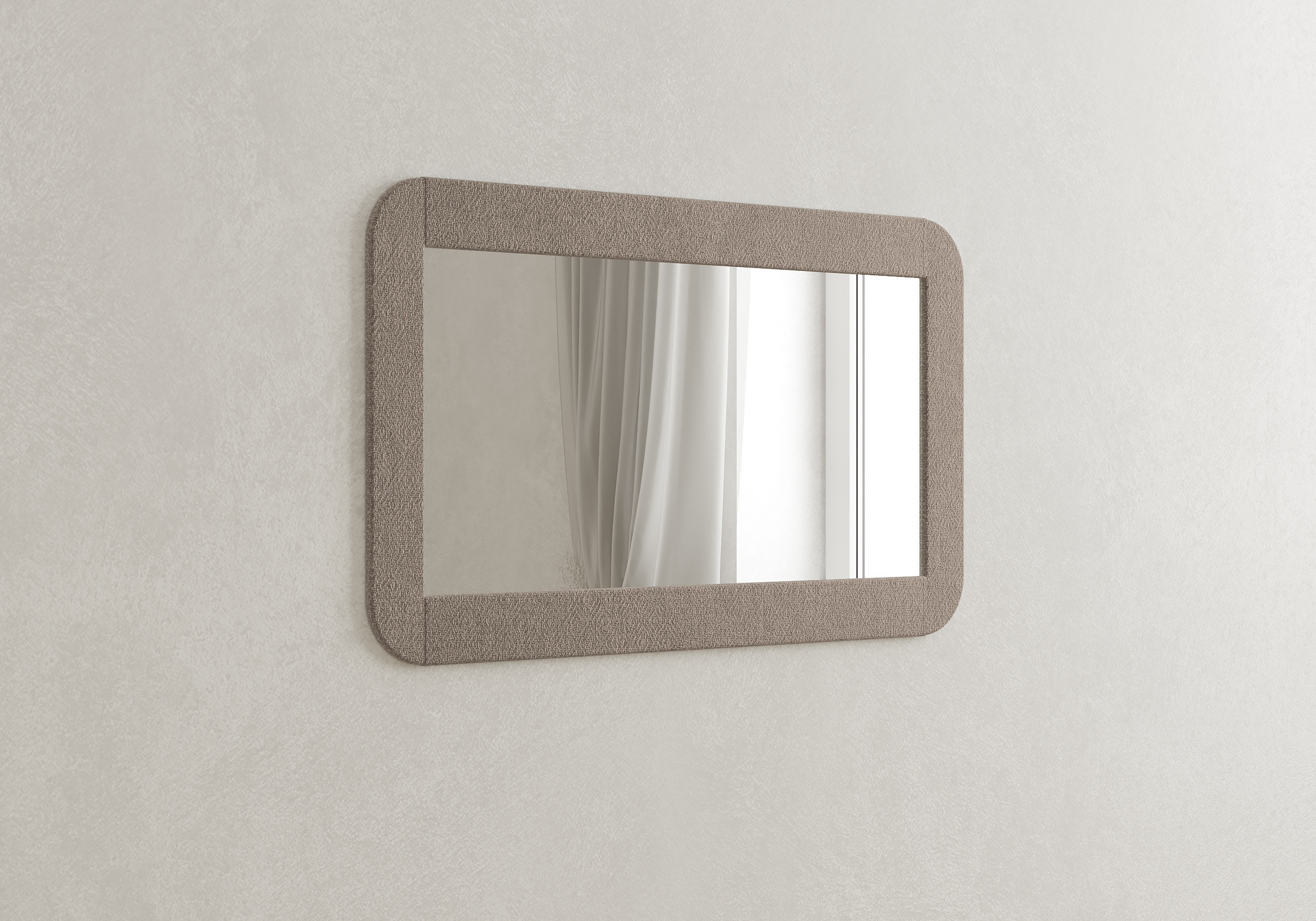 Изящное прямоугольное зеркало в мягкой обивке. Возможно выполнение в различных вариантах цветового исполнения.